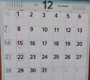 ◇12月の休みと年末年始の休みのお知らせ◇