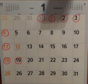 ◇2026年1月の休みと日曜営業日のお知らせ◇