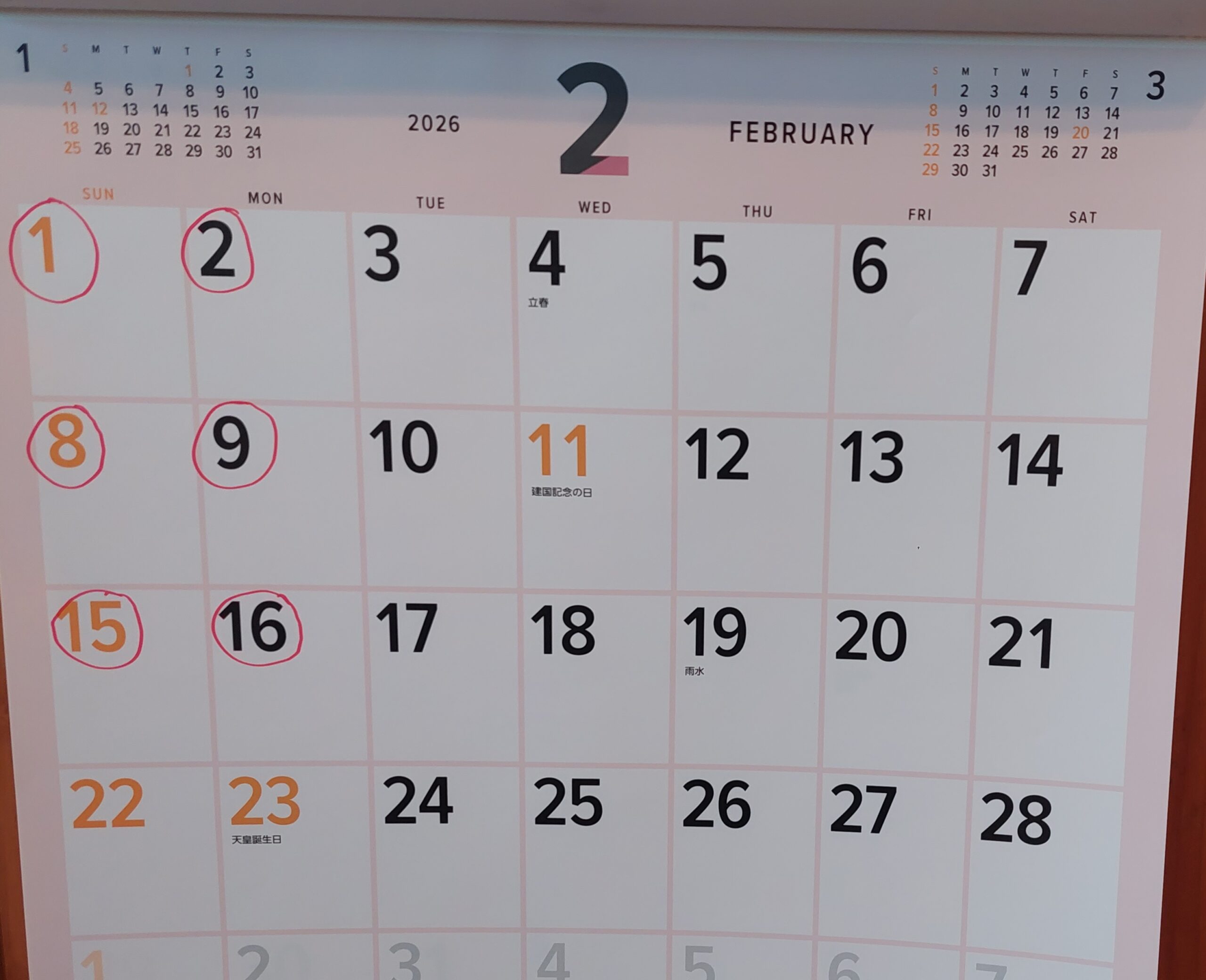 2026年◇2月の定休日と日曜営業日のお知らせ◇