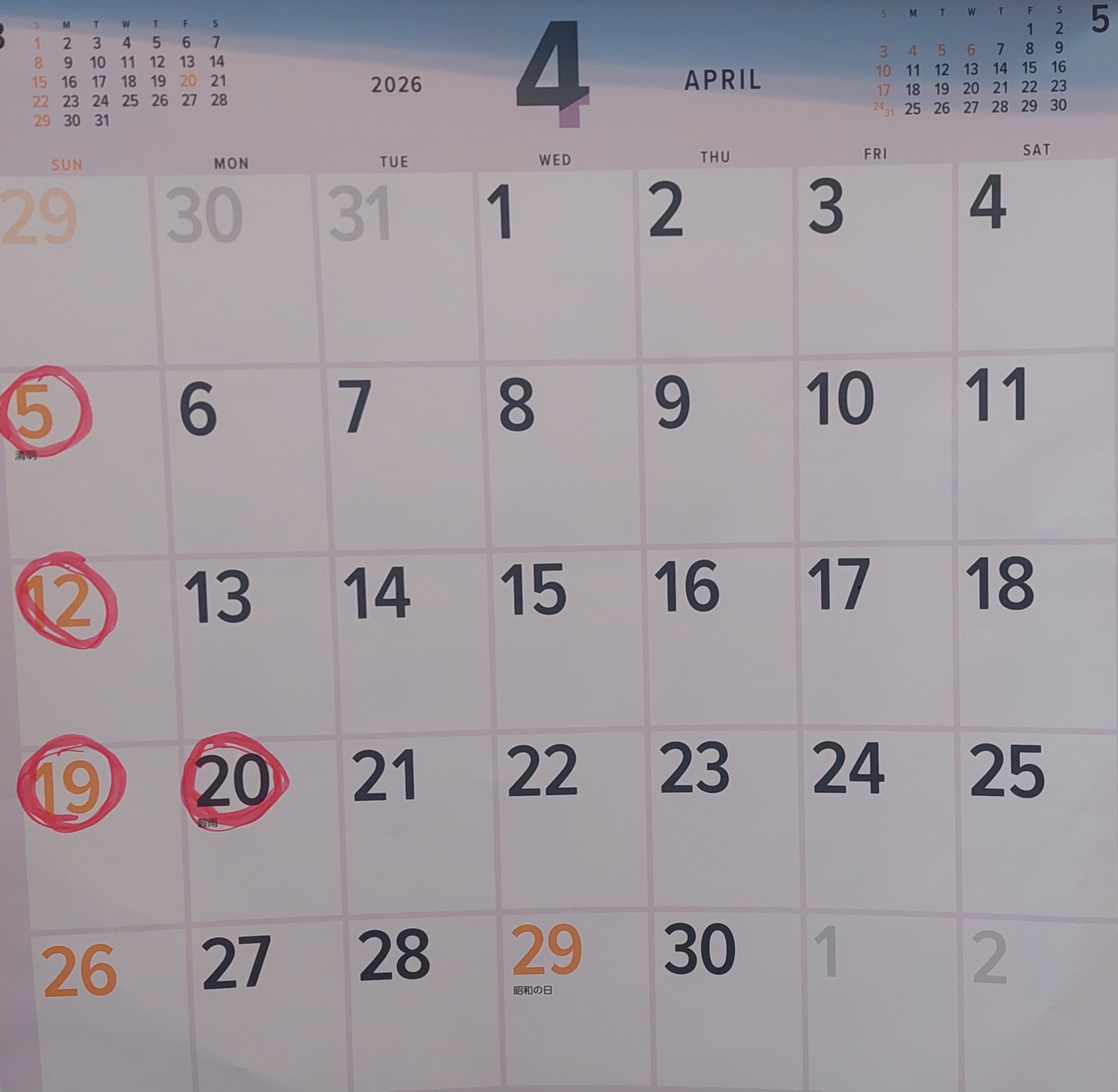 ◇2026年4月の休みと日曜営業日のお知らせと、ロミロミ創業価格フェアのお知らせ◇