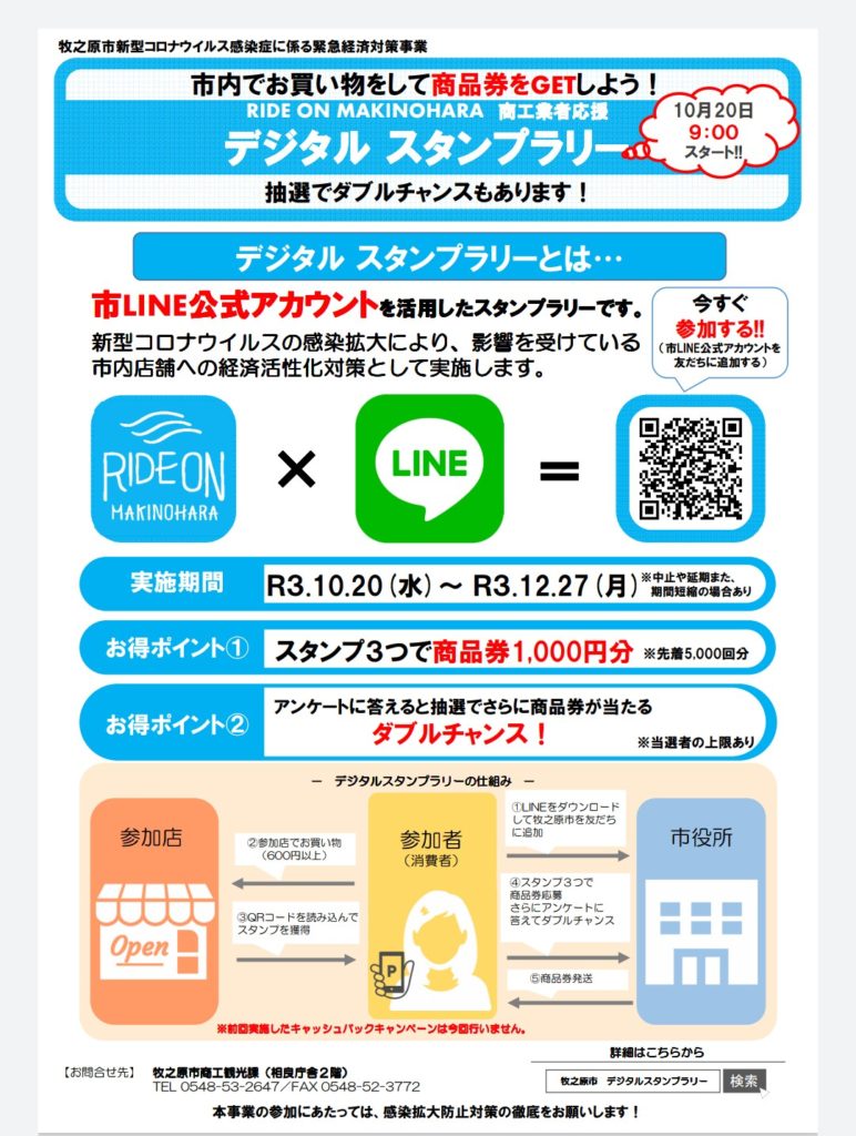 牧之原市では、新型コロナウイルス感染症に係わる緊急経済対策事業として、市内でお買い物をして【商品券をGETしよう!】デジタルスタンプラリーを