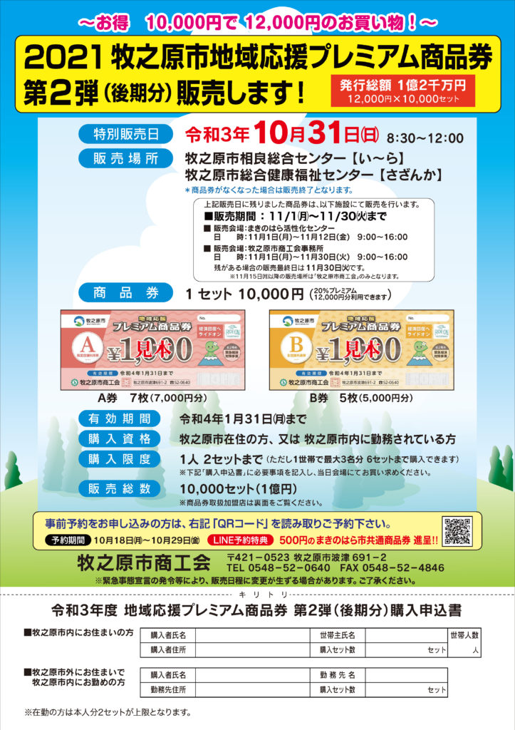 2021牧之原市地域応援プレミアム商品券第2弾(後期分)販売します!